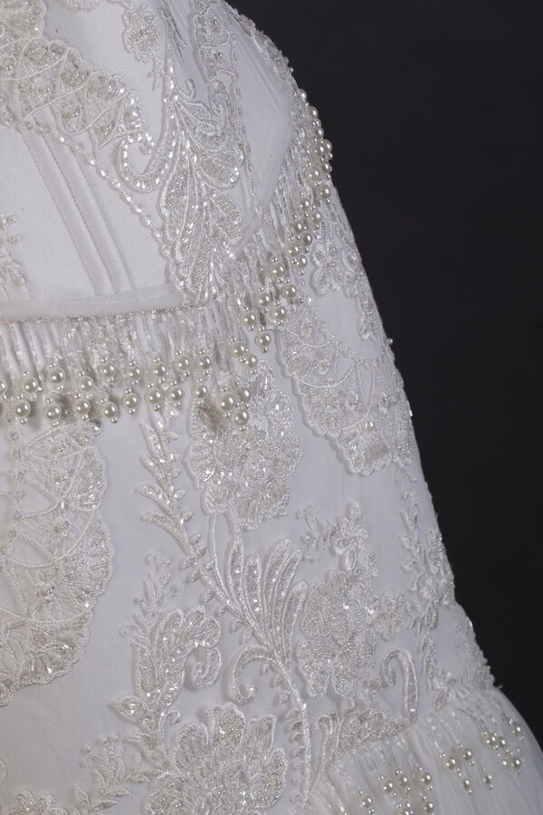Vestido de Noiva Bordado Decote Canoa e Saia Sereia